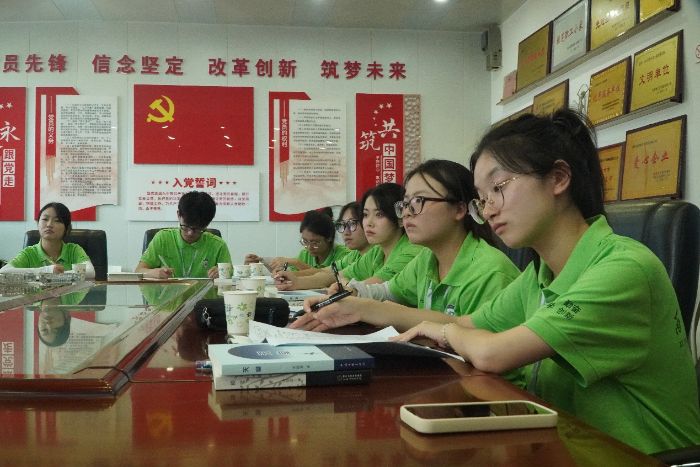 圖為實踐團成員聆聽凌曉晨老師的想法。中國青年網通訊員賴峪楦攝