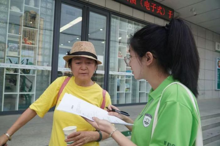 圖為實踐團成員采訪咸陽市居民 通訊員 賴嶼楦 攝