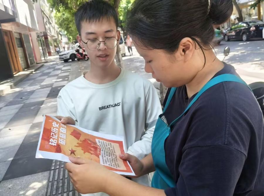 [圖為實踐隊員向青少年講解紅色知識并進行互動問答]