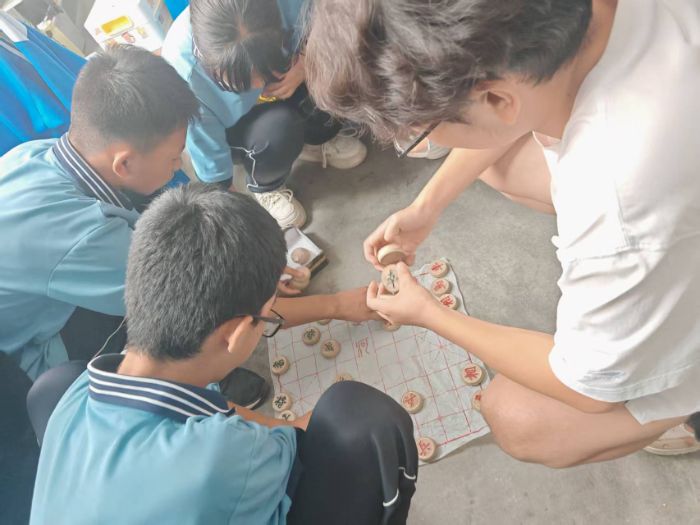 圖為隊員和學生進行下象棋益智游戲,安康 攝