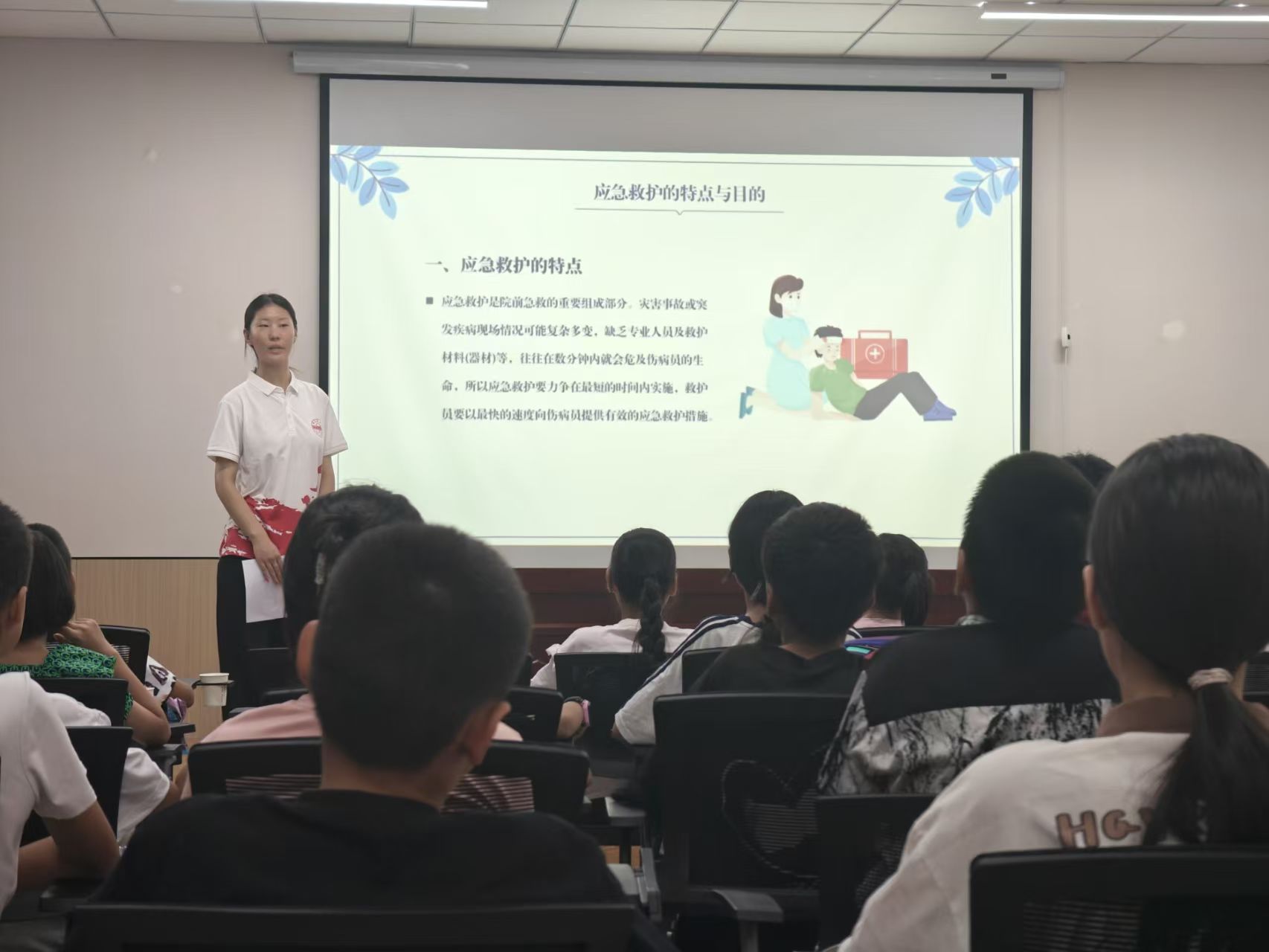 活動現場,主講人魏鈺橦對心肺復蘇、海姆立克法及傷口包扎等急救知識進行了系統講解。通過用生動的案例和通俗易懂的語言,將復雜的急救知識轉化為易于理解的實用技能,讓青少年對急救知識有了初步認知。緊接著,預防食物中毒專題講解從食物選購、儲存、加工等多個環節入手,為大家揭示了日常生活中容易忽視的食品安全隱患,傳授了科學有效的預防方法。