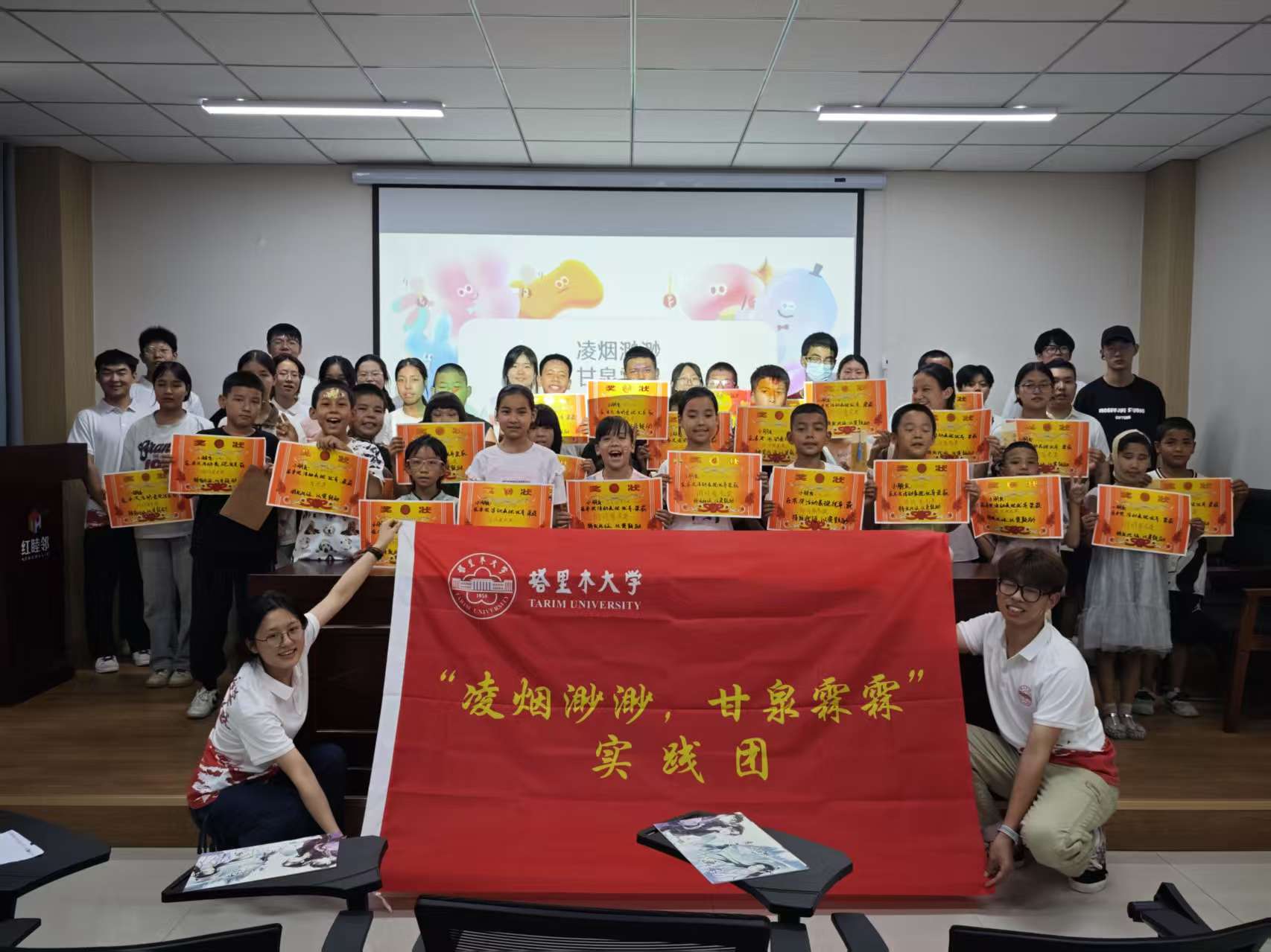 ▲圖為庫爾勒市康樂社區實踐團成員與青少年集體合影
