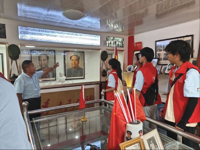 篇章四:紅館聆聽初心語 薪火相傳使命擔“一間紅館藏歲月,滿腔赤誠映初心。”7月11日下午,實踐團走進當地的武山村紅色展覽館,雖場館不大,卻陳列著承載革命記憶的老照片、舊物件,靜靜訴說著這片土地的紅色故事。武時備館長用沙啞卻充滿力量的聲音,逐件講解展品背后的英雄事跡——從抗戰時期的支前故事到新時代的鄉村變遷,從革命先輩的奮斗歷程到當代黨員的堅守奉獻。