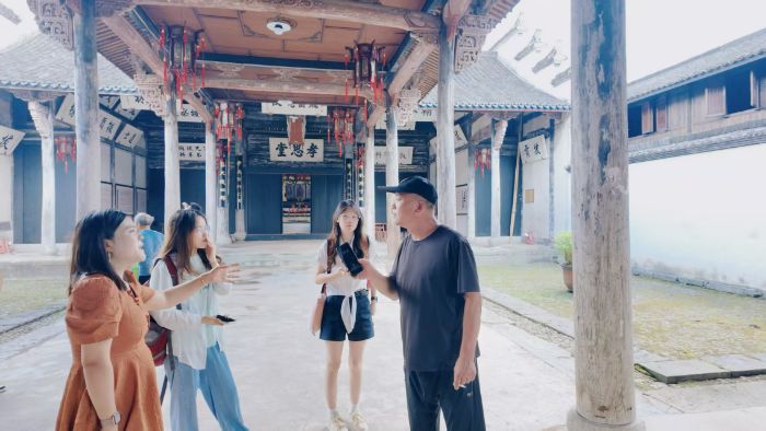 邁進(jìn)戴氏宗祠,時(shí)光仿佛在此放慢了腳步。褪色的木門、高懸的匾額,靜靜訴說著家族的傳承故事。在這古韻流淌的宗祠院落深處,實(shí)踐團(tuán)成員對當(dāng)?shù)卮鍟涍M(jìn)行了深入采訪。