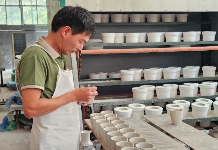 實(shí)業(yè)興村:小車間承載大夢想家門口鋪就致富路 在蔡徑村黨支部書記徐瓊英的帶領(lǐng)下,實(shí)踐隊(duì)參觀了其創(chuàng)辦的福興茗玉瓷工廠。車間內(nèi),工人們正專注地進(jìn)行拉坯、修坯、施釉、燒制等工序,每一道流程都井然有序,展現(xiàn)出德化陶瓷精湛的傳統(tǒng)工藝與現(xiàn)代生產(chǎn)的高效結(jié)合。村書記介紹道,創(chuàng)辦這家工廠不僅是響應(yīng)習(xí)近平總書記"要實(shí)實(shí)在在、心無旁騖做實(shí)業(yè)"的囑托,更是踐行"服務(wù)基層、造福群眾"的初心使命。通過發(fā)展陶瓷產(chǎn)業(yè),工廠為當(dāng)?shù)卮迕裉峁┝硕鄠€就業(yè)崗位,帶動周邊家庭增收致富,真正實(shí)現(xiàn)了"家門口就業(yè)"。隊(duì)員們深刻感受到,這正是基層干部以實(shí)際行動落實(shí)習(xí)近平總書記"要把鄉(xiāng)村振興戰(zhàn)略這篇大文章做好"重要指示的生動寫照,也為其他地區(qū)發(fā)展特色產(chǎn)業(yè)、推動鄉(xiāng)村振興提供了可借鑒的實(shí)踐經(jīng)驗(yàn)。