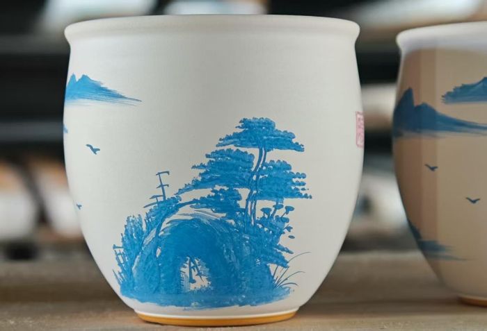 圖為彩繪工人在瓷釉面描繪紋樣。郭巧敏供圖