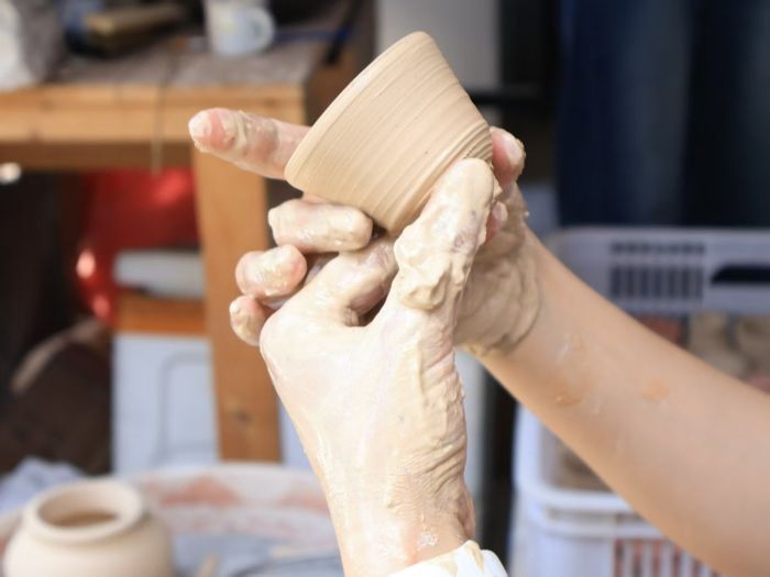 圖為實(shí)踐隊(duì)員現(xiàn)場(chǎng)感受手工拉坯過(guò)程。王晶供圖