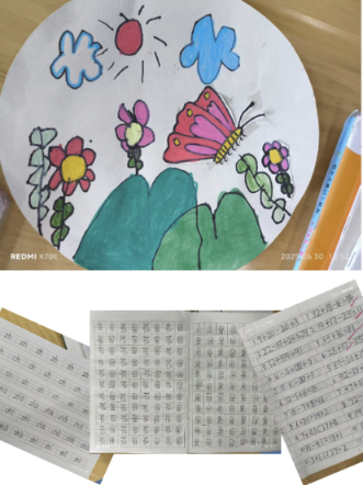 實(shí)踐期間,團(tuán)隊(duì)結(jié)合兒童特點(diǎn)開展多項(xiàng)活動。繪畫教學(xué)中,楊誠嘉帶領(lǐng)兒童進(jìn)行基礎(chǔ)創(chuàng)作,丁俊協(xié)助分發(fā)工具,幫助包括盲童在內(nèi)的特殊兒童完成首次繪畫嘗試;手工環(huán)節(jié),葉珍兒通過手把手指導(dǎo),幫助孩子們掌握疊愛心技巧,提升其動手能力;作業(yè)輔導(dǎo)時,李文豪用生活化案例講解數(shù)學(xué)應(yīng)用題,王天天則通過標(biāo)注五角星等方式肯定兒童的作答成果,增強(qiáng)其學(xué)習(xí)信心。