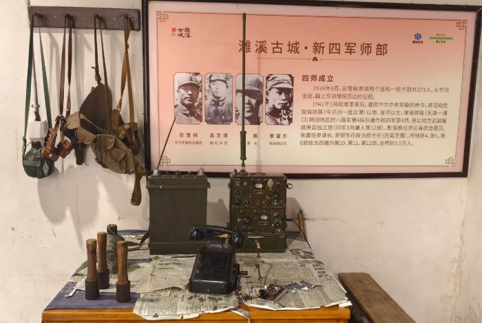 濉溪古城不僅是非遺文化的傳承地,更是有著紅色記憶、革命歷史的地方。調研團參觀了位于古城石板街48號的新四軍師部舊址,這是全國新四軍紀念館中保存完整的革命舊址之一,承載著新四軍第四師在抗日戰爭中的光輝歷程。面對銹跡斑斑的手槍、電報機、沖鋒號等文物,隊員們仿佛被拉回到了那個戰火紛飛的年代,更加堅定了銘記歷史、傳承紅色基因的信念。