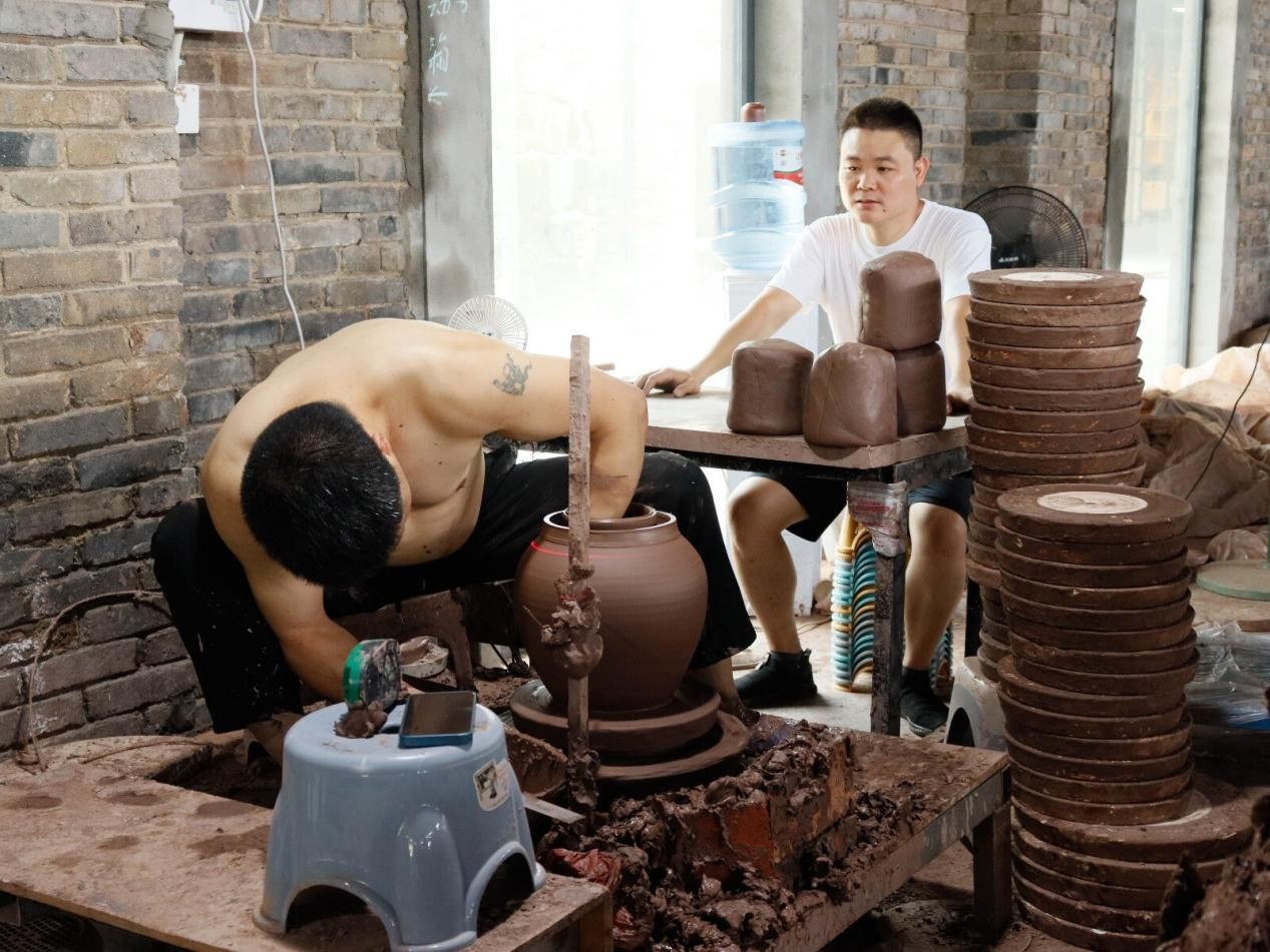 圖為實踐隊實地觀察制陶師傅制陶流程。肖云杰 供圖