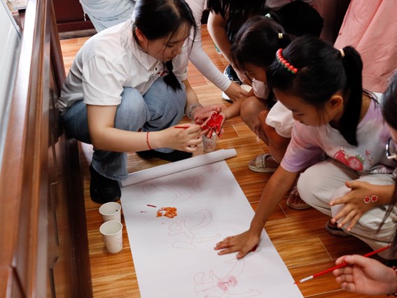 圖為實踐隊成員和小朋友們一起完成“情緒印畫”。肖云杰 供圖