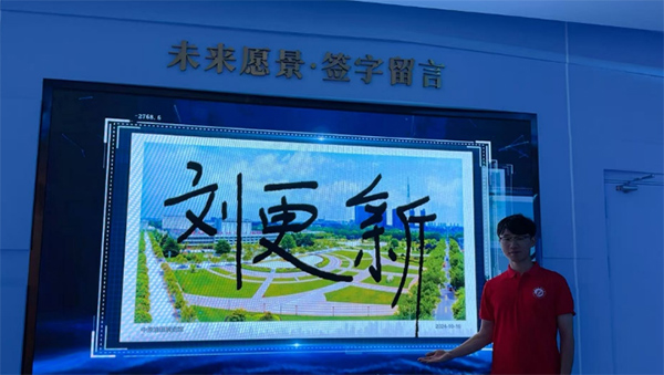 實踐隊員劉更新在“未來愿景”展區電子屏上簽字