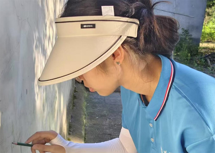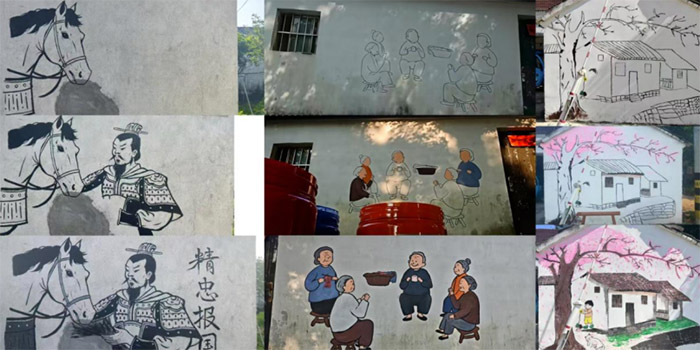 7月3日上午,實踐團(tuán)隊到達(dá)十字鎮(zhèn),便與當(dāng)?shù)卮甯刹繉L地點與主題展開親切交流。當(dāng)?shù)卮甯刹繛槌蓡T們詳細(xì)介紹了當(dāng)?shù)氐臍v史文化、農(nóng)耕文化、茶園生態(tài)以及櫻花旅游特色,并帶領(lǐng)她們走訪村落,實地考感受察村容村貌與見證新時代鄉(xiāng)村建設(shè)成果。結(jié)合實地見聞與其特有的文化底蘊,雙方共同商議明確了墻繪的主題:在古樹下圍繞茶文化繪制一幅村民喝茶閑聊圖,展現(xiàn)茶文化與市井風(fēng)情;在古橋邊圍繞櫻花特色創(chuàng)作一幅櫻花古鎮(zhèn)圖,呼應(yīng)當(dāng)?shù)氐穆糜翁厣?;在古?zhàn)場遺址畫一幅岳飛喂馬圖。傳承歷史記憶。成員們在素材選擇上緊扣鄉(xiāng)村特質(zhì),既尊重當(dāng)?shù)氐奈幕瘋鹘y(tǒng),又融入藝術(shù)創(chuàng)意,每一處細(xì)節(jié)都凝聚著對工作的認(rèn)真態(tài)度與助力鄉(xiāng)村建設(shè)的熱忱,為后續(xù)墻繪筑牢了基礎(chǔ)。