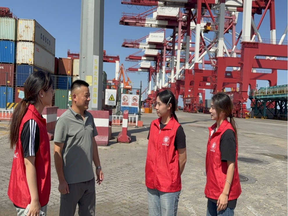 夏日的海風裹挾著碼頭的朝氣,7月14日,山東管理學院“綠見中國”生態文明建設實踐團隊懷揣對綠色發展的探索熱忱,深入青島港董家口港區開展實踐活動,既在實地探訪中觸摸港口發展的脈搏,更以青年視角參與綠色實踐,在知行合一中深化對生態文明建設的理解。