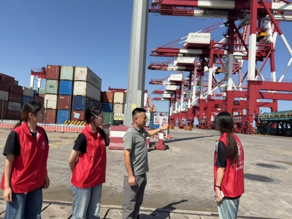 實踐團隊在青島港碼頭進行實踐。張明涵攝