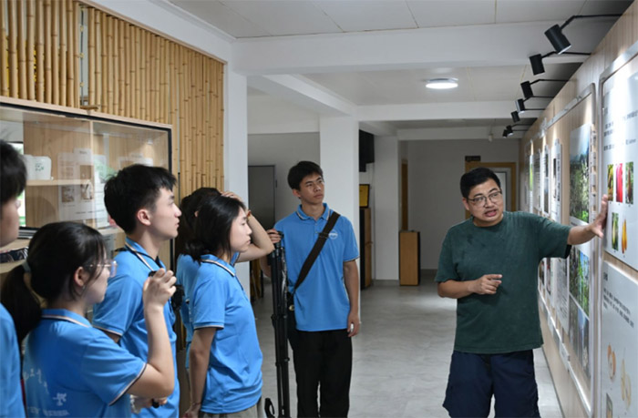 圖為非遺傳承者為團隊講解竹篾產品 徐巖 供圖
