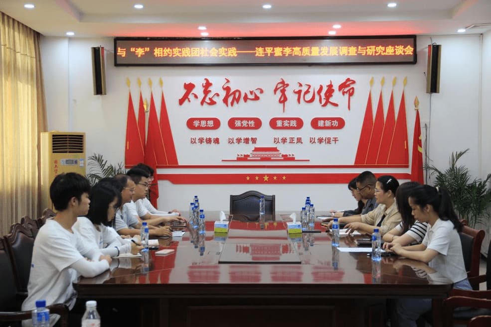 (圖為實踐團(tuán)與元善鎮(zhèn)鎮(zhèn)政府展開連平蜜李高質(zhì)量發(fā)展與調(diào)研會 劉淇淇 攝)