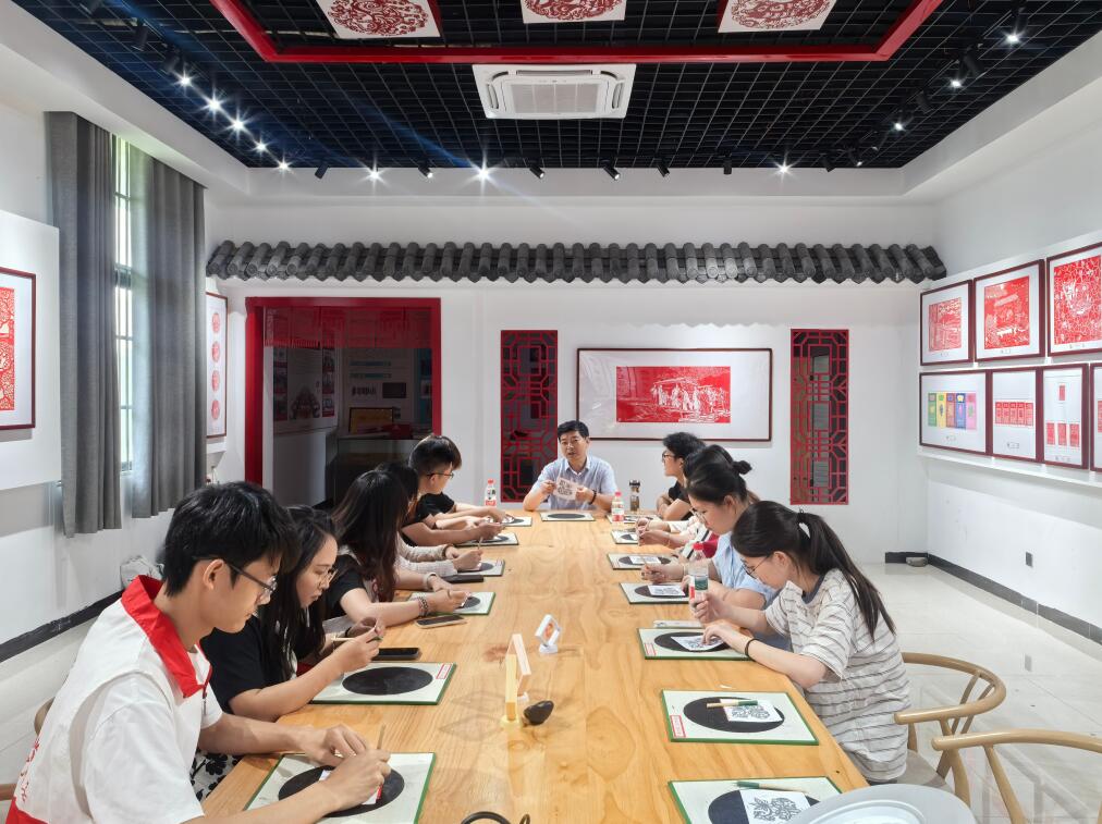 沉浸體驗(yàn),感受非遺魅力。實(shí)踐團(tuán)成員在非遺傳承人張仁高老師的指導(dǎo)下,于動(dòng)手實(shí)踐和親耳聆聽(tīng)中感受非遺魅力。刻紙桌前,成員們屏息凝神,執(zhí)起刻刀,于方寸紙間游走,“柿柿如意”的紋樣逐漸躍然紙上;親手觸摸鼓面,學(xué)習(xí)擊打節(jié)奏,嘗試模仿韻味悠長(zhǎng)的唱段。“一刀一刻、一鼓一韻,親身體驗(yàn)后才真正懂得何為匠心,也更深刻理解了張老師‘讓文化在年輕人手中傳承下去’的執(zhí)著信念”。團(tuán)隊(duì)負(fù)責(zé)人李欣芯說(shuō)道。