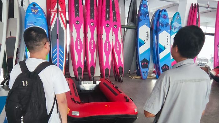 針對當前槳板制造的技術瓶頸,企業技術人員與隊員們展開深度交流。隊員們結合力學專業背景,就國內槳板生產仍依賴人工刷膠拼接,熱熔自動化技術因工藝適配性差尚未普及,導致生產效率受限這一問題,隊員們提出,熱熔技術只適用于單層材料側邊結構,雙層材料側邊結構只能人工進行刷膠粘貼,相比之下,單層材料側邊結構的耐磨、使用壽命等均不如雙層側邊結構,對于追求高性能的廠商與用戶自然會選擇后者。隊長紀禎和表示,國內企業需在材料研發、自動化生產等領域加大投入,同時通過產品創新提升市場接受度。
