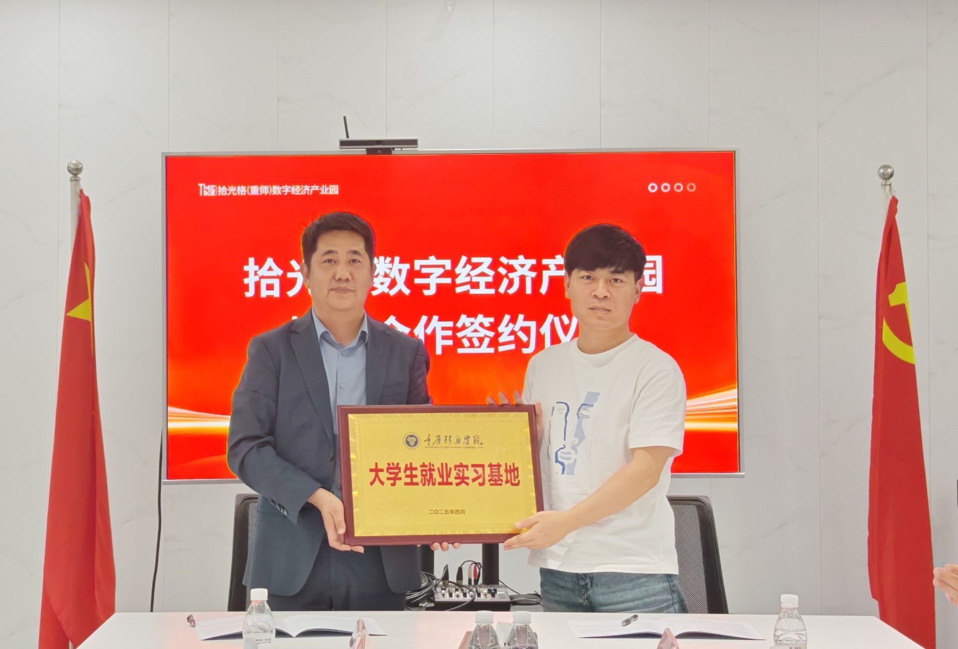 座談會上,校企園三方達成合作意向,我校副校長陳仲華與拾光格數字經濟產業園、重慶達夢大數據科技有限公司、重慶聚盟科技發展有限公司、重慶獵杰人才科技發展集團有限公司、血色年華(重慶)傳媒有限公司分別簽訂合作協議,在現場順利舉行大學生就業實習基地授牌儀式。