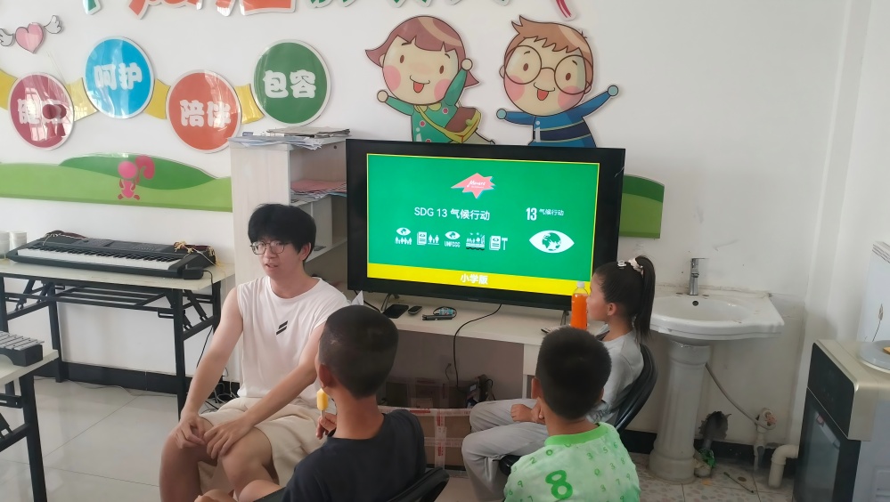上午的第二節(jié)課,支教隊(duì)為孩子們帶來(lái)了一場(chǎng)生動(dòng)有趣的“氣候行動(dòng)”科普講座。考慮到孩子們的接受能力,隊(duì)員們用通俗易懂的語(yǔ)言和豐富的圖片、視頻,講解了全球變暖、極端天氣、碳排放等概念。