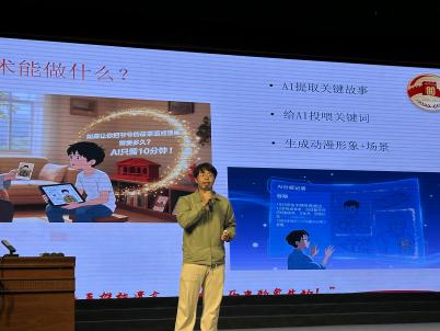 團隊向同學們展示了運用AI技術創作的老兵動漫圖片,并分發了自主設計的帆布包、書簽、活頁本、明信片等主題文創產品。這些充滿創意的小禮物,瞬間拉近了學生們與老兵精神的距離。