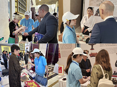 用西語講述中國故事 向世界展現非遺魅力論壇期間,新洲竹雕、湖北青磚茶、麥稈畫等湖北非遺文化展位吸引了眾多外賓的目光。西語班志愿者積極為外賓們進行翻譯介紹,激發了他們對湖北非遺文化的濃厚興趣。