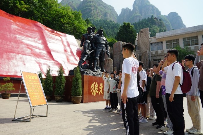 在追思先烈的肅穆氛圍中,全體成員前往狼牙山五勇士廣場,黨旗如炬,五勇士雕像莊嚴,支部黨員高舉右拳,誓言鏗鏘,重溫入黨初心,堅定聽黨話、跟黨走,以青春之我,續寫中國之夢。