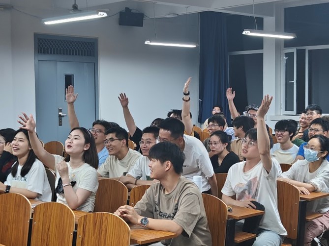 交流互動環節中,呂晨睿、李忠航,錢學堯等同學們的發言彰顯了青年在國家發展中的重要角色,他們深刻理解青年所肩負的歷史責任和時代使命,號召青年群體積極融入國家現代化的宏偉藍圖,以熱忱和實際行動,為國家的繁榮昌盛貢獻青春力量。