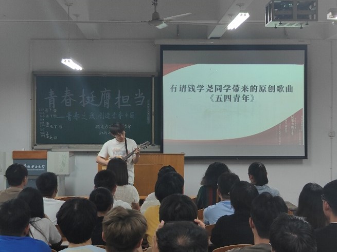 此外,錢學堯同學的原創歌曲《五四青年》以其優美的旋律和深情的歌詞,傳遞了青年的活力和愛國情懷,贏得了在場團員的熱烈掌聲。